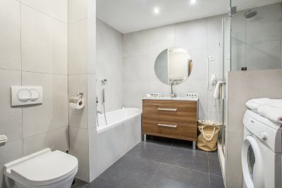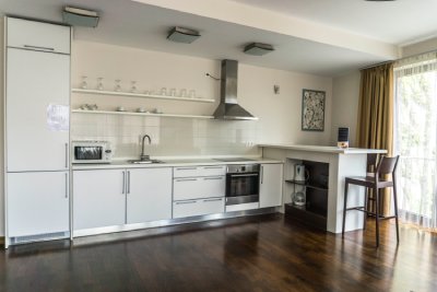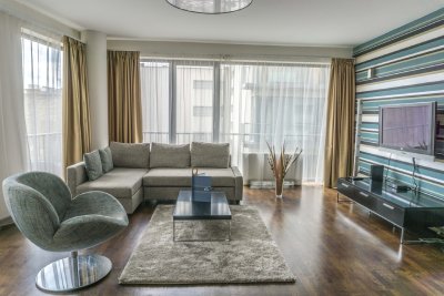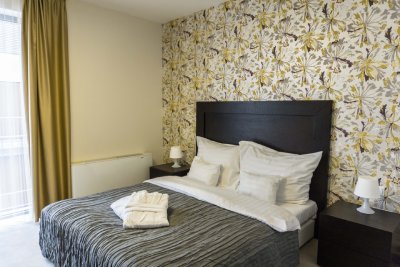 These modern design Superior One-Bedroom Apartments offers a comfortable stay for guests who enjoying a shorter or longer stay in the Hungarian capital. Each apartments have a unique and elegant design, which is a perfect choice for couples, families and business travelers alike. The 55-60 m2 apartments feature a bedroom with a luxurious double bed, a spacious air-conditioned living room, a well-equipped American style kitchen with a dining area and every comfort you need after a long day in Budapest. The living room includes a comfortable sofa, an LCD TV with a collection of local and international channels, a DVD player and complimentary Wifi Internet access. All of our guests are given free access to the Wellness & Fitness area. In addition, each apartment can be equipped with a washing machine to be used at the guests’ convenience.